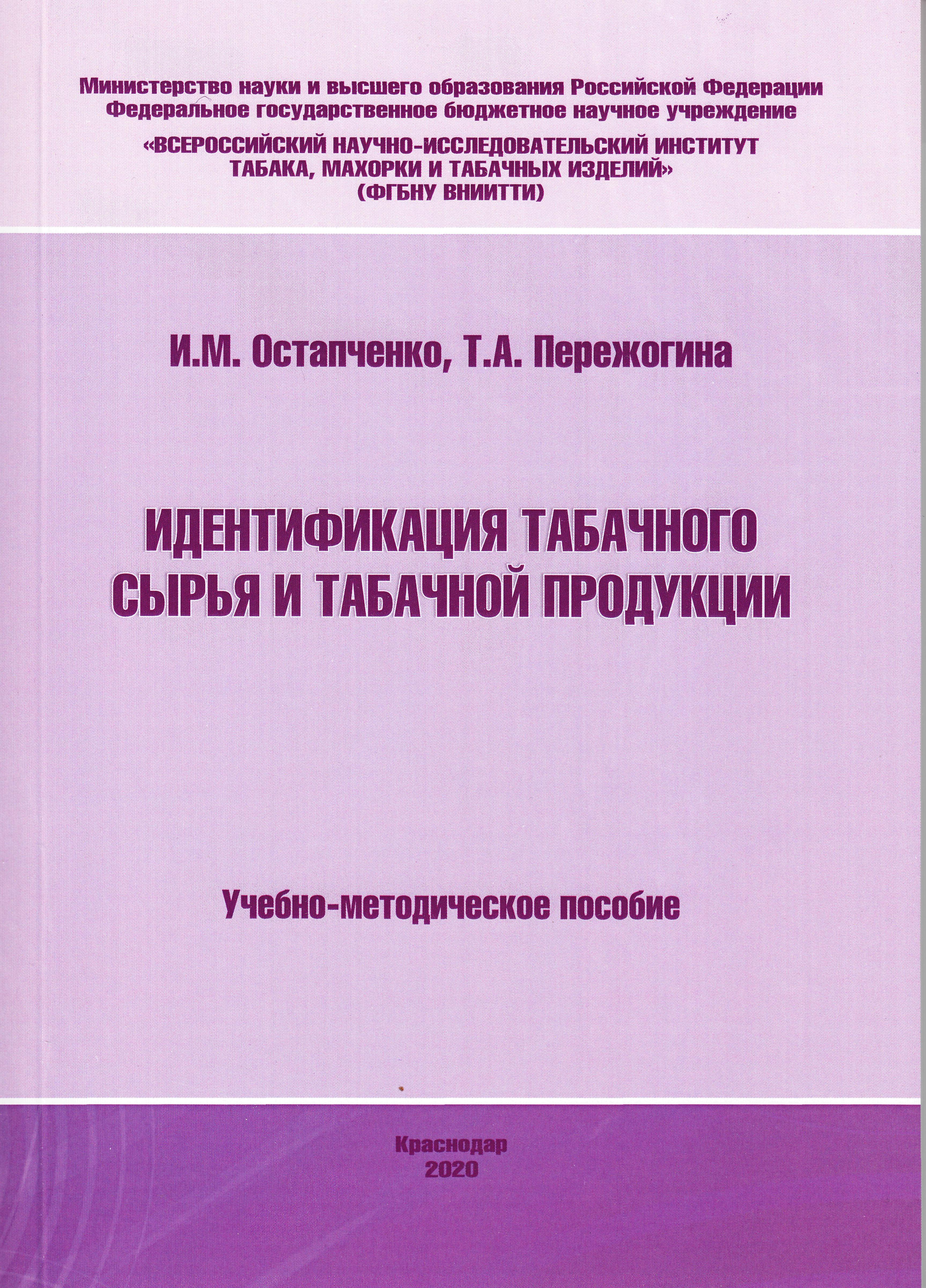Идентификация табачного сырья и табачной продукции. Учебно-методическое пособие